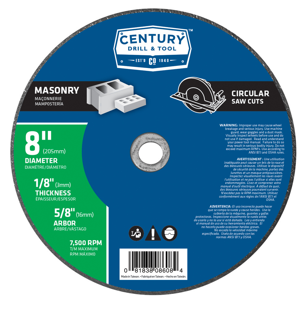 Century Drill & ToolType 1A (Masonry) For Portable SawsConcrete/Masonry8 in5/8 in7,500 Safe Max SpeedC24R1/8 in1 $5.99 Add to cart
