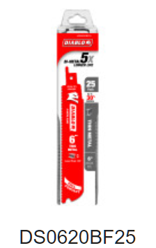Diablo ToolsThick Metals (3/16 in to 9/16 in)6 inDual Tooth10-Aug6 in Diablo Bi-Metal Recip Blade for Metal Demolition (3/16 in to 9/16 in) (5 pk)--Bulk 5-Pack $15.32 Add to cart