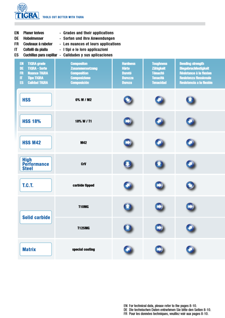 Item # 104589, Tigra Planer Knives for System Tersa - Black Oxide