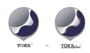 Torxplus® FEATURES • Spreads driving force over larger area allowing for higher torque transmission • Maximizes engagement between bit and fastener virtually eliminating camout • Reduces tool slippage and application damage • Reduces bit wear, extending tool life