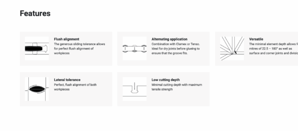 Another application is the use for test connections before a workpiece is joined with a Tenso P and adhesive. The clamping force of the Tenso P is very powerful and, depending on the angle of the workpieces, disassembly may require a lot of force. It is therefore advisable to check the precision of the machining with a Bisco P. The Biscos are then simply removed from the grooves, replaced by Tenso P, adhesive is then applied, and the workpieces are joined together.