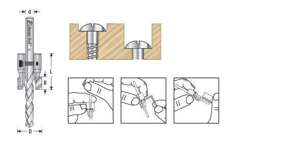Accepts drills from 3/32" through 9/32" (wood screw sizes #2 through #18). 20206 includes 1/4" diameter drill.