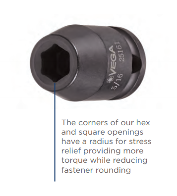 Item # 20802, Vega 6-pt Impact Sockets Long Length - 3/8" Sq Drive (MM)