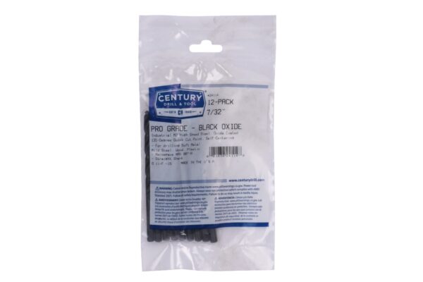 Item # 24114, Century 7/32 in, 3 3/4 in OAL 135 Deg Pro Grade Black Oxide Drill Bits - Pro Pack of 12