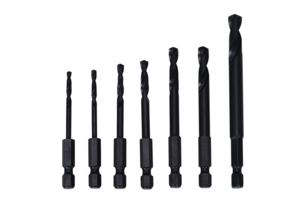 - Set includes (2) 1/8 in, (1) 5/32 in, (1) 3/16 in, (1) 7/32 in, (1) 1/4 in, and (1) 5/16 in drill bits