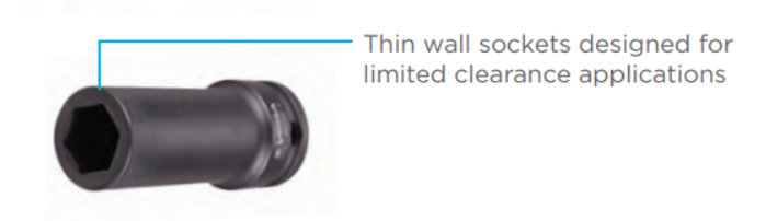 Item # 35161-DT, Vega 12-pt Impact Sockets Std Length Thin Wall - 1/2" Sq Drive (SAE)