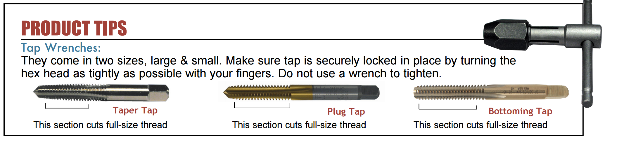 -Taper, plug, and bottoming styles provide great versatility in tough materials, both blind and through holes.