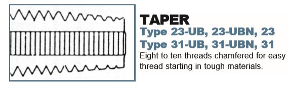 Taper Style: Starts the thread square with workpiece.