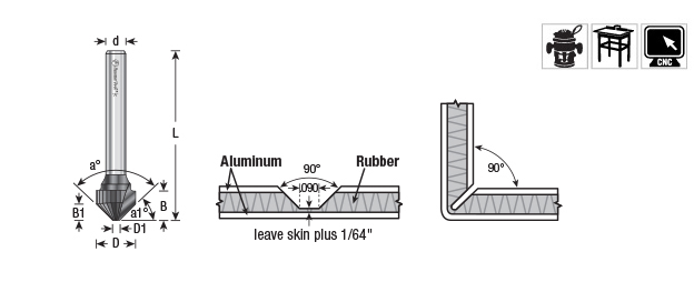 Item # 45792-M, Amana Tool 1/2" D x 3/8" CH x 6mm Shank CNC Double-Edge Folding V & Rectangular Groove for Shaping Aluminum Composite Material Carbide-Tipped Router Bit