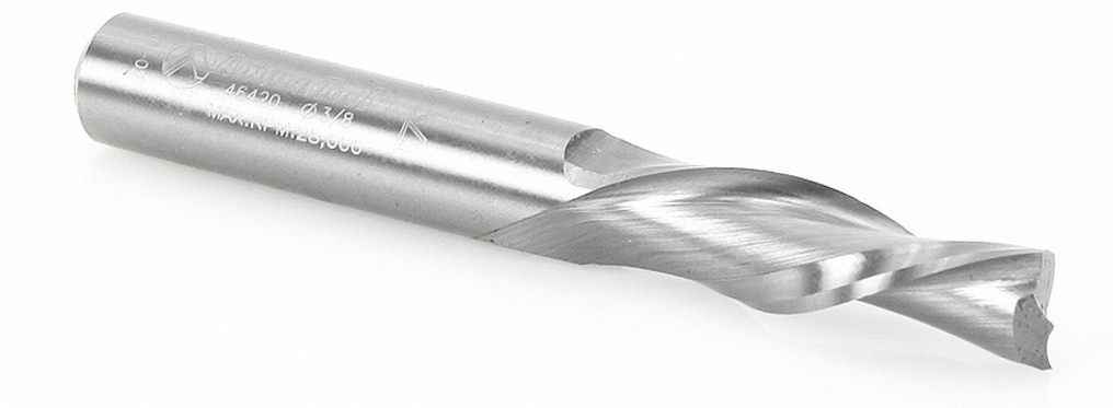 Item # 46420, Amana Tool CNC Spiral Flute Plunge Solid Carbide 3/8" x 1 1/4" x 3/8" Shank Router Bit - 2-Flute, Downcut