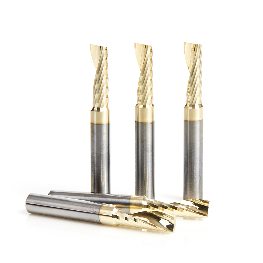 Item # 51377-Z-5, Amana Tool 5-Pack Solid Carbide CNC Spiral 'O' Flute, Aluminum Cutting 1/4 Dia x 3/4 x 1/4 Shank Upcut ZrN Coated Router Bit