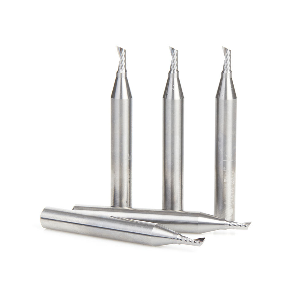 Item # 51474-5, Amana Tool 5-Pack Solid Carbide CNC Spiral 'O' Single Flute, Aluminum Cutting 1/8 Dia x 1/4 x 1/4 Shank x 2 Inch Long Upcut Router Bit