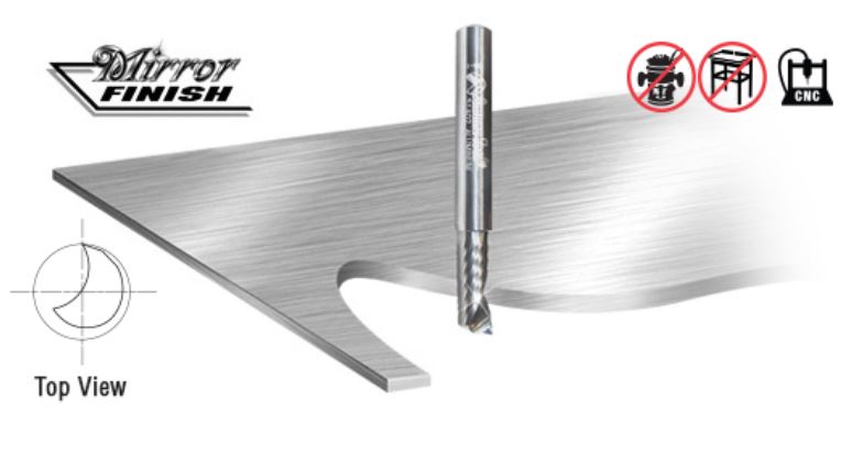 Using the highest quality sub-micrograin carbide, these bits have a special proprietary edge processing system featuring a super high polished cutting edge with a unique “mirror finish,” resulting in clean cuts, less chance for chip re-welding, a superior surface finish, and a longer tool life. Right hand helix; right hand cut. Specifically designed for a variety of CNC machining applications. Excellent for cutting aluminum, Alupanel®, brass, copper, ACM, and other non-ferrous metals.