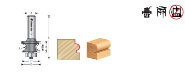 Produce three slightly different profiles using this bit - an edge bead with or without a fillet and a full corner bead - by altering the bit extension or rolling the workpiece between passes. This group of hard-to-find tools is particularly suitable for antique reproductions and restoration projects. Use in a handheld or table-mounted router.
