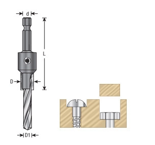Flat bottom counterbores for using round head screws, hex bolts, etc. Includes pilot drill.
