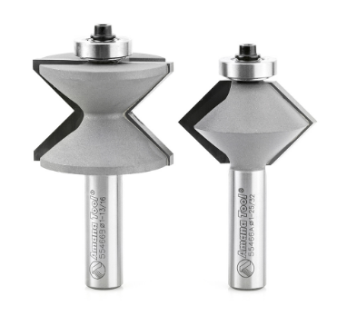 Item #55466, Amana Tool 2-Piece Edge Banding Set Carbide-Tipped 90° x 1-25/32" Dia x 1-1/32" CH x 1/2" Shank 2-Flute