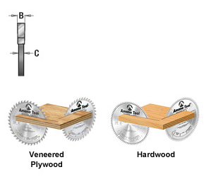 Designed to cut 1/4" grooves in solid wood and plywood on table saws and sliding table saws. Flat top grind; 12° hook angle.