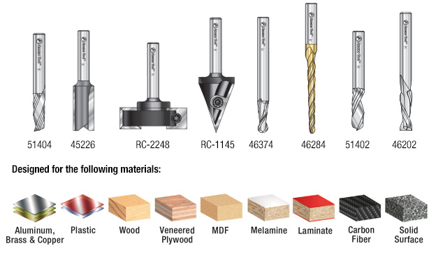 | Type | Signmaking Starter CNC Router Bit Collection II - Solid Carbide, Carbide-Tipped, Insert Carbide |