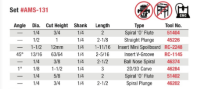 Item # AMS-131, Amana AMS Series 8-Pc Signmaking Starter CNC Router Bit Collection II, 1/4" Shank