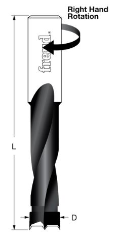 Freud's industrial carbide-tipped brad point boring bits are designed for multiple spindle machines. Boring bits are supplied with a 10mm shank with an adjustable top screw making them compatible with most boring machines. Drills all composition materials, solid surface materials, plywood, hardwoods, and softwoods on automatic or manual multi-spindle boring machines.