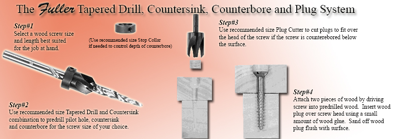 Used to countersink and counterbore for heads of screws in woods, plastics, and non-ferrous materials. Heat-treated for long tool life. The countersink is held in place with two hex-socket screws and is easily adjustable up and down the drill so only one countersink and length of drill is required for one screw size.