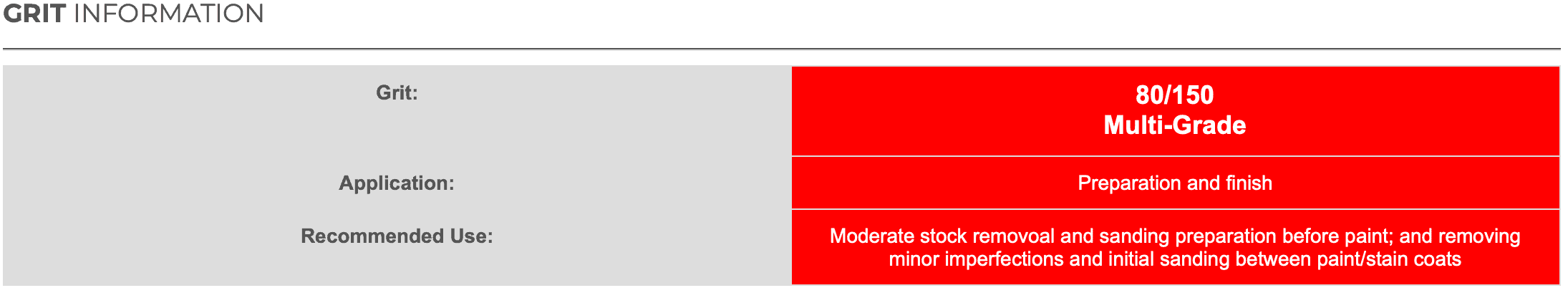 Ideal For: Moderate stock removal and sanding preparation before paint, and removing minor imperfections and initial sanding between paint/stain coats
