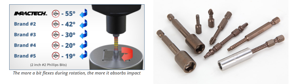 Made from S2 modified shock resistant steel for professional performance and durability. Patented spiral torsion zone absorbs impact and extends bit life. Proprietary precision CNC machined tips for excellent fit in fastener recess. Tested to outperform all leading brands in lifecycle and tip failure testing.