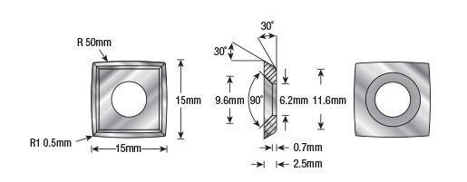 | Edge(s) | 4 Cutting Edges with Radius, Rounded Corners & Chamfer |