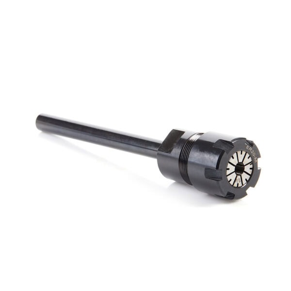 ER collet chucks used for different projects and applications; save money by not purchasing extra-long tools! Choose the correct size spring collet for your bit, set the tool depth, and tighten the collet nut using the mini wrench. Have the extra reach you need at economical prices.