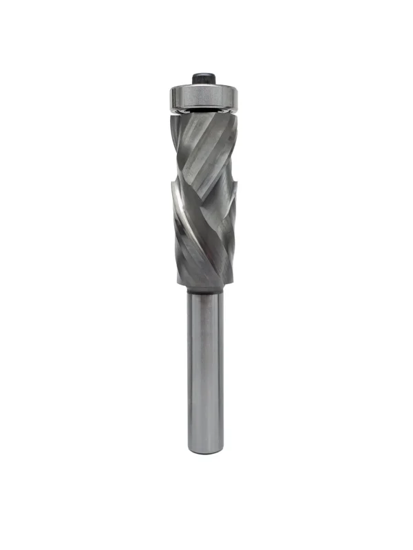 The "Ultra-Long ULTIMATE" Flush Trim Bit has a compression design to provide the best performance and quality found on our Classic Ultimate Bits on thicker stock. These bits leave a crisp, clean edge on both the top and bottom edge of the work piece, even in difficult wood grains. Having a top and bottom bearing gives you the opportunity of working with either a top or bottom template. For best performance, use the shortest cut length needed for the application.